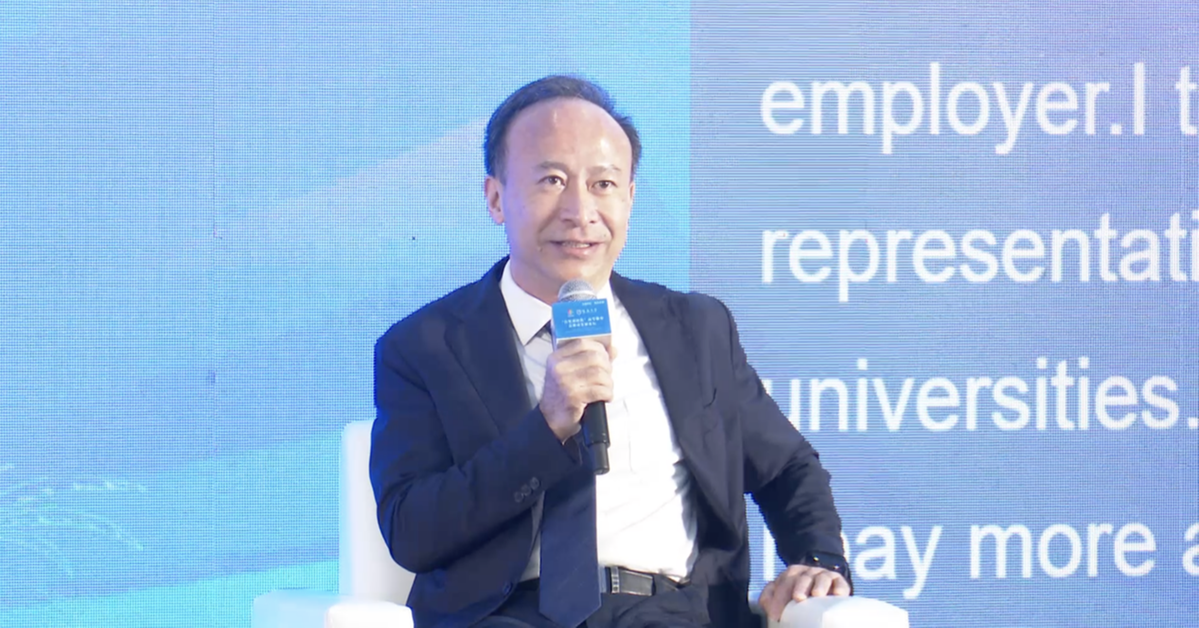 (中国新一代人工智能发展战略研究院执行院长龚克作题为《抓住机遇,在高水平开放中深化教育改革创新》的主旨报告 高可贺摄)
