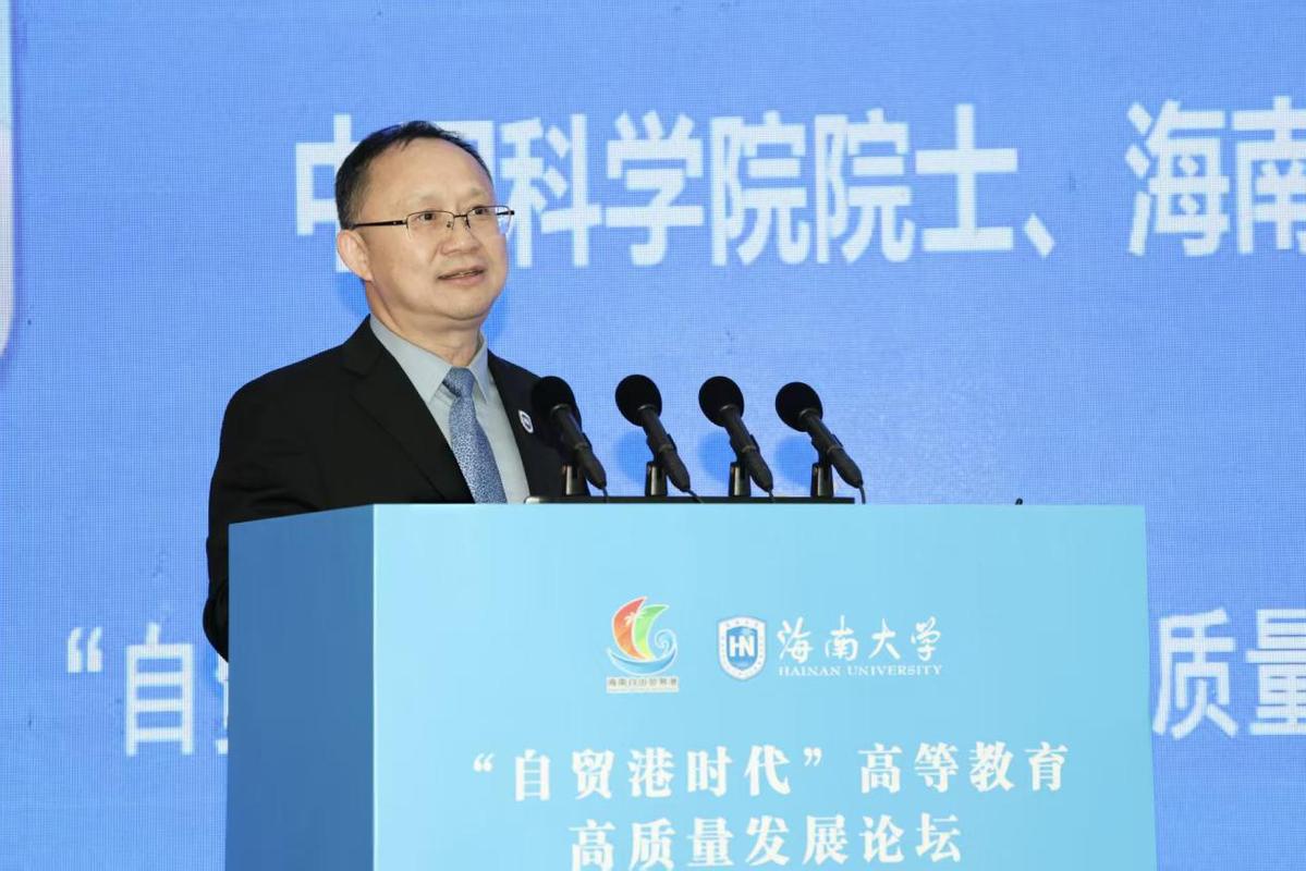 (骆清铭作题为《“自贸港时代”高等教育高质量发展的海大探索》的主旨报告 高可贺摄)