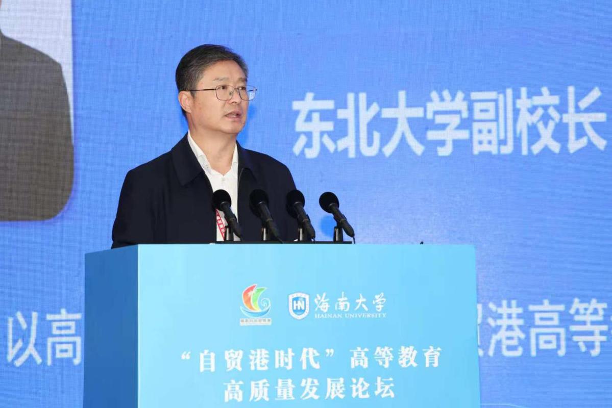 (东北大学副校长徐峰作题为《以高水平开放促进海南自贸港高等教育高质量发展》的主旨报告 高可贺摄)