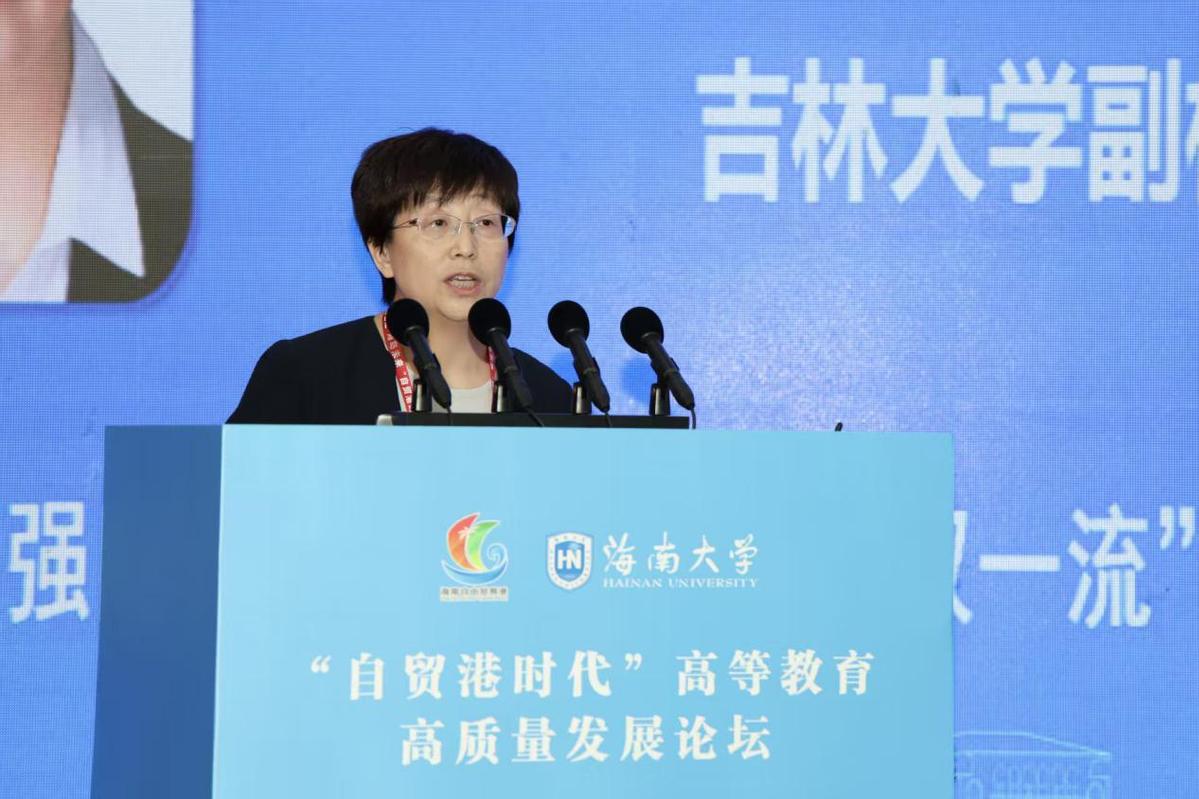 (兰州大学党委书记马小洁作题为《坚持“三足鼎立”深化产学研融合加快培育自贸港时代高质量发展新动能》的主旨报告 高可贺摄)