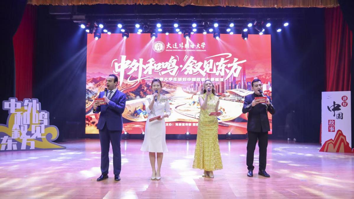 大连外国语大学日前举办“中外和鸣·叙见东方”中外大学生讲好中国故事大赛展演活动。来自10余个国家的百余名中外大学生们一起用汉语讲好中国故事,展现全面立体的中国。