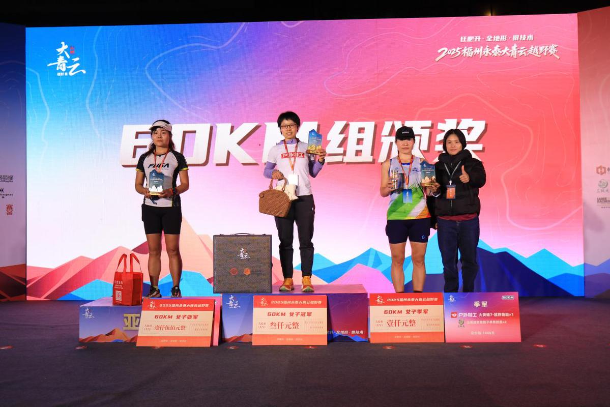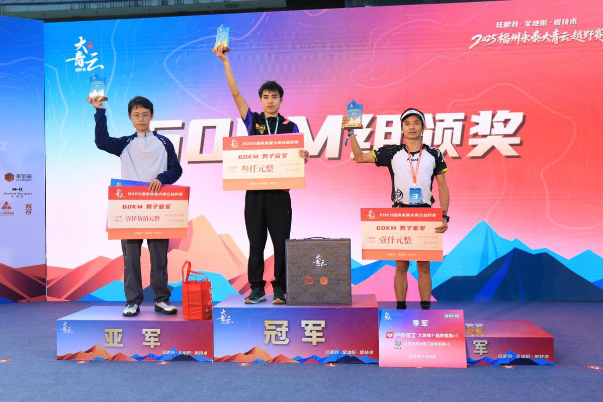 经过激烈角逐,最终,代虞能以07:37:03斩获60KM组男子冠军,纪小敏以09:36:36摘得60KM组女子桂冠;35KM男子组、女子组冠军由罗词华、欧阳奕分别夺得,35KM团队冠军由跑山帮夺得;12KM男子组、女子组冠军由王文、林珮玟分别获得,选手们在青云之巅用汗水诠释了顽强拼搏、永不言弃的体育精神。