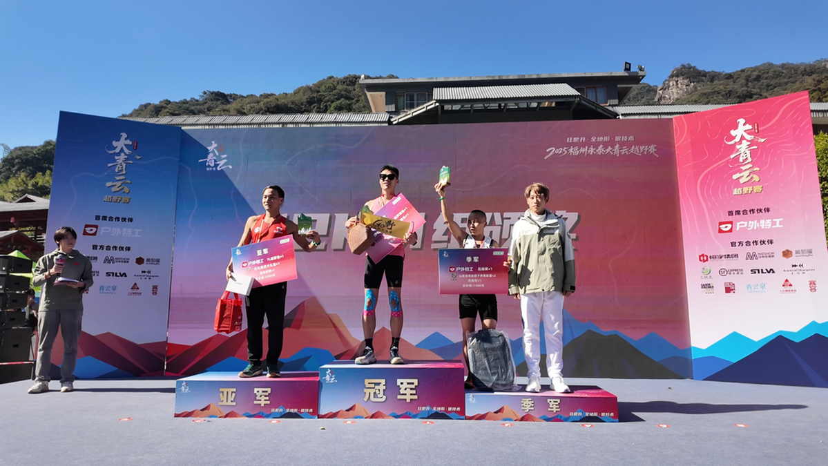 为推动全民健身与专业竞技深度融合,本届赛事特别设置了全民健身组“全运冠军领跑”活动。全运会海岸赛艇男子单人双桨冠军檀儒凯、全运会4×100米混合接力冠军肖远鹏、全运会75公斤级散打冠军林宏伟亲临赛场,与全民健身组选手一同奔跑在永泰的山水长卷中,沉浸式感受运动与自然交融的独特魅力。“我第一次来参加这个比赛,永泰大青云越野赛的沿途风景非常漂亮。今天天气也非常适合我们越野,整体跑起来非常舒适。”参赛选手马成花赛后坦言。
