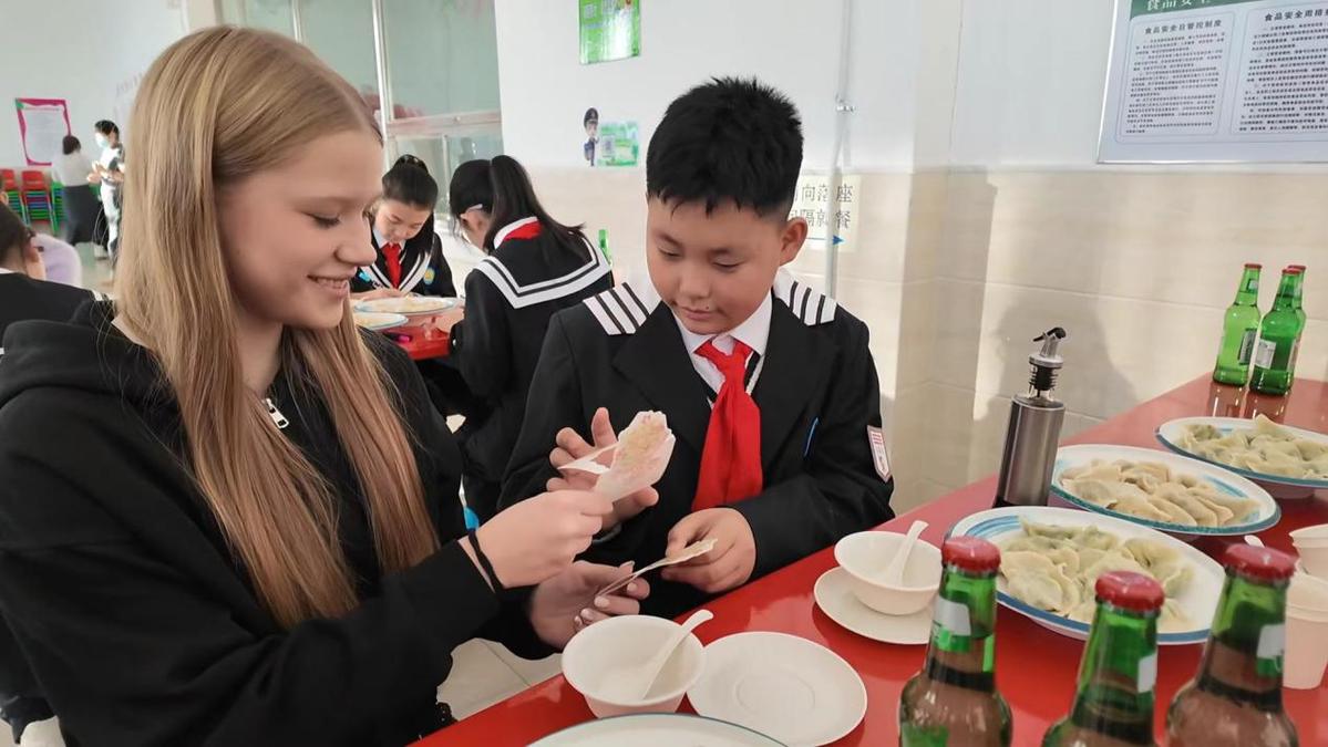 随后,大家一同品尝亲手包的饺子。热气腾腾的饺子端上桌,两国青少年互赠手写新年祝福卡片,在氤氲的热气和真诚的笑容中,友谊悄然升温。