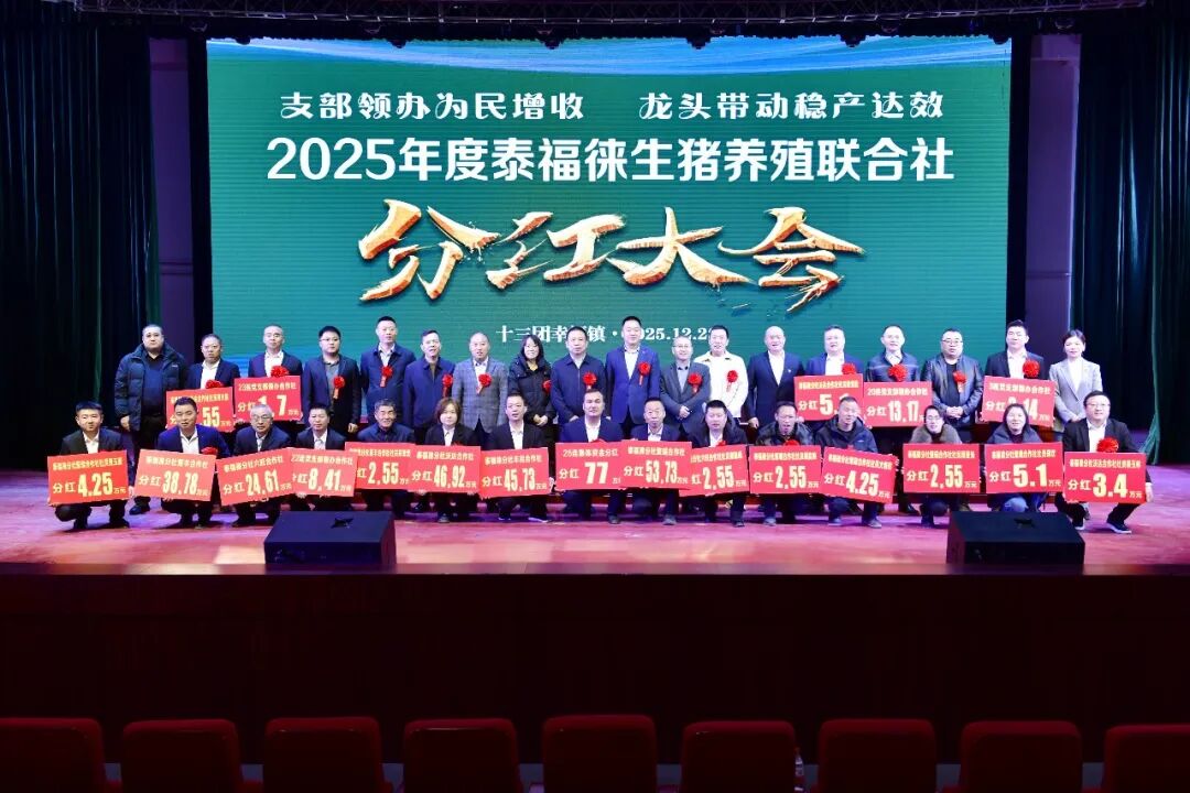 元旦前夕,新疆阿拉尔市泰福徕畜禽养殖农民专业合作社联合社2025年度分红大会在兵团第一师十三团幸福镇举行,现场发放分红资金311万元,惠及1000余名职工群众。
