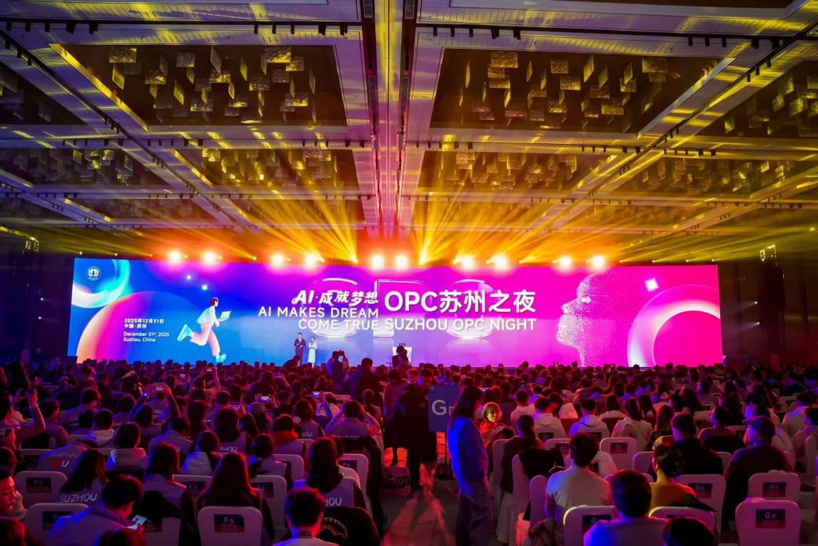为深入贯彻落实国家“人工智能+”行动战略,进一步打响“OPC创业首选苏州”品牌,打造近悦远来的人才友好型城市,12月30日-31日,“OPC之夜苏州行”活动燃情举办。活动聚焦人工智能时代青年创新创业需求,吸引全球青年人才参与,来自牛津大学、帝国理工学院、新加坡国立大学、香港大学、康奈尔大学、墨尔本大学、多伦多大学等海外知名高校200余名青年人才,来自国内高校大学生和苏州本地高校大学生,共千余名学子共赴“苏州之夜”,共同打造了一场集政策宣介、产业展示、人才对接于一体的青春嘉年华,这既是一场全球大学生的跨年迎新盛典,也全面展现了“生活在这里很有福气”的苏州活力与城市温度。