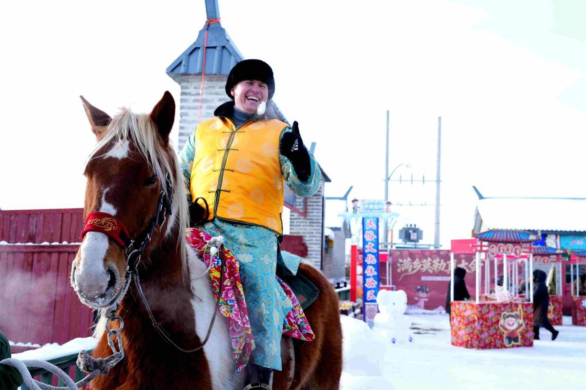 经过一系列的闯关考验,最终,来自俄罗斯的伊万拔得头筹,身披满族官服,在众人簇拥下骑马游街,也为上午沉浸式体验满乡民俗活动画下圆满句号:“这个乡村的新年氛围很浓厚,乡村也建设的非常漂亮,第一次来中国过年,能够体验这些项目,很开心。”俄罗斯游客纳斯佳对记者说道。