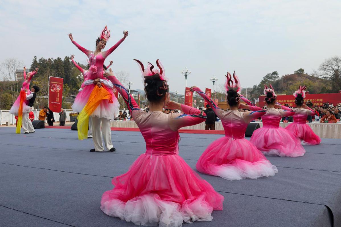 近日,武夷山旅游职业中专学校学生在建校50周年教育教学成果展上表演舞蹈。(邱汝泉 摄)