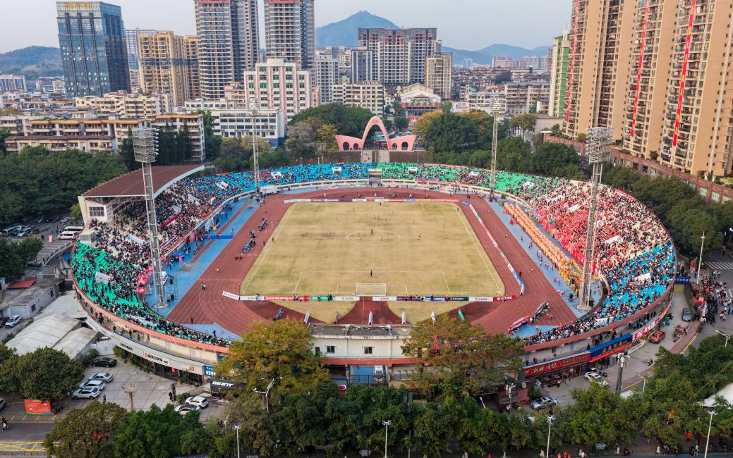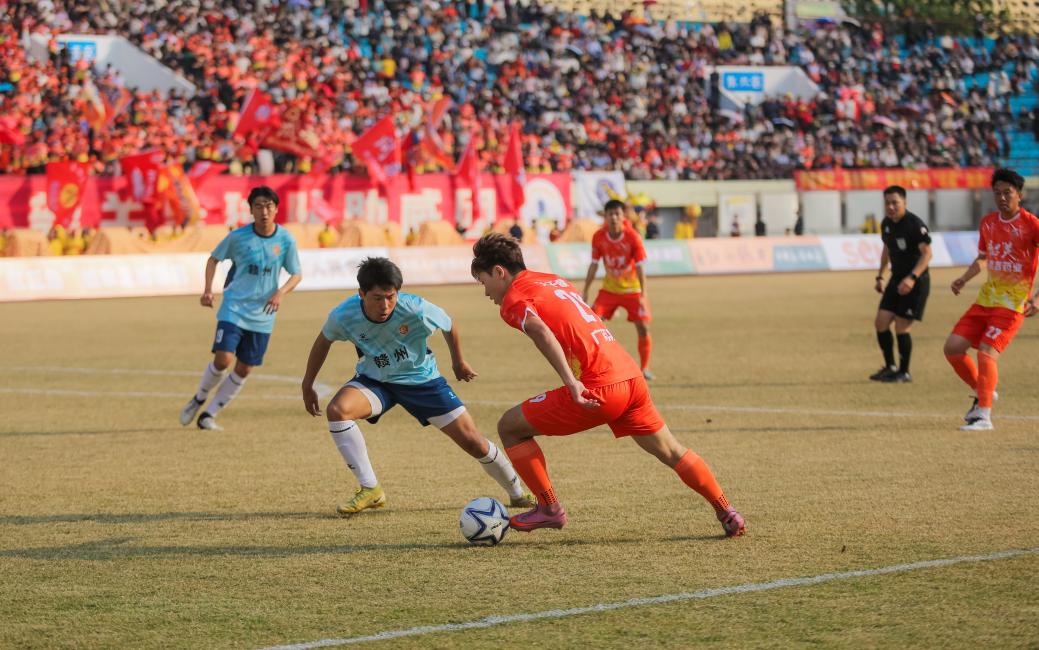 当天下午,现场进行经典红歌串烧,彰显“红三角”区域的红色底蕴。开赛前夕,全场合唱《歌唱祖国》的嘹亮歌声响彻全场。随后,首届“英东杯”粤湘赣“红三角”城市足球联赛正式开赛。绿茵场上,东道主韶关队与赣州队展开强强对决。