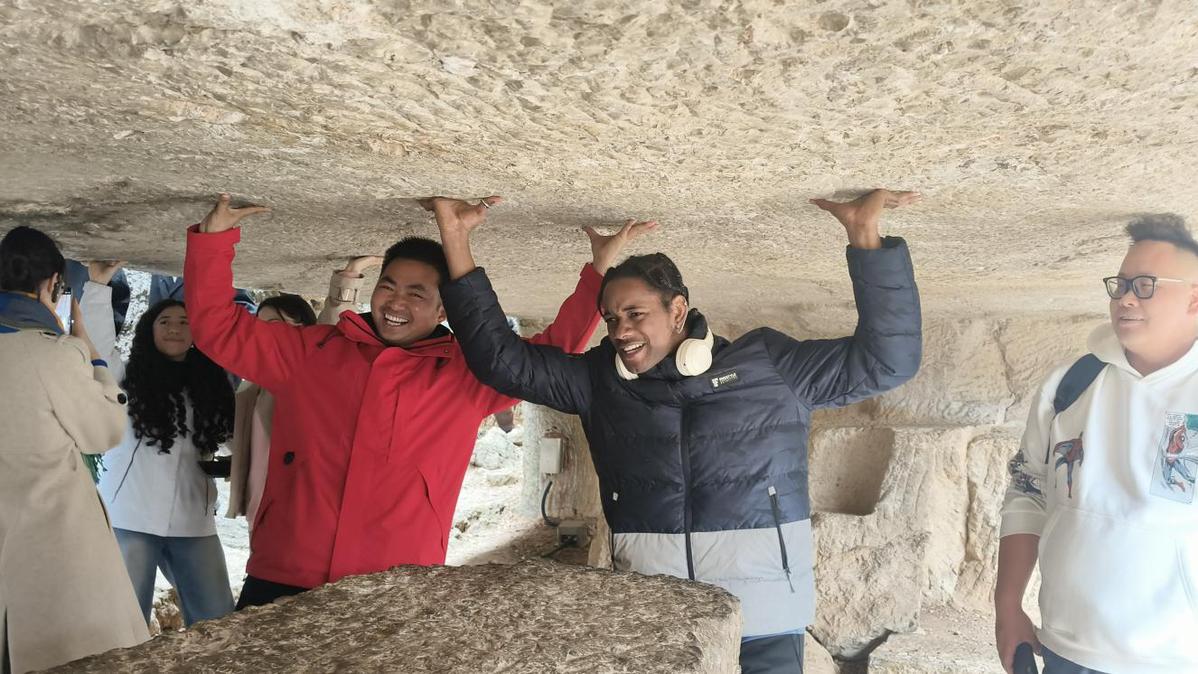 1月18日,“一日阅遍金陵美”国际青年“读城”系列活动走进南京汤山,来自俄罗斯、白俄罗斯、德国、墨西哥等国的十余位青年组成研学团,通过一天的时间,游历南京猿人洞、阳山碑材、龙尚村、江苏园博园,完成了一场从百万年前出发,贯穿古今的沉浸式“时空扫描”,阅读汤山与南京的文明脉络。
