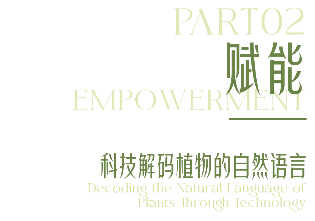 展览通过捕捉植物影像,运用全息投影、AIGC 交互等技术模拟自然生态的演化规律,精准复刻了植物在不同环境下的生长状态、形态特征与生命节律,让“科技”成为生态植物的 “翻译官”,将自然的规律转化为可感知的五感语言。