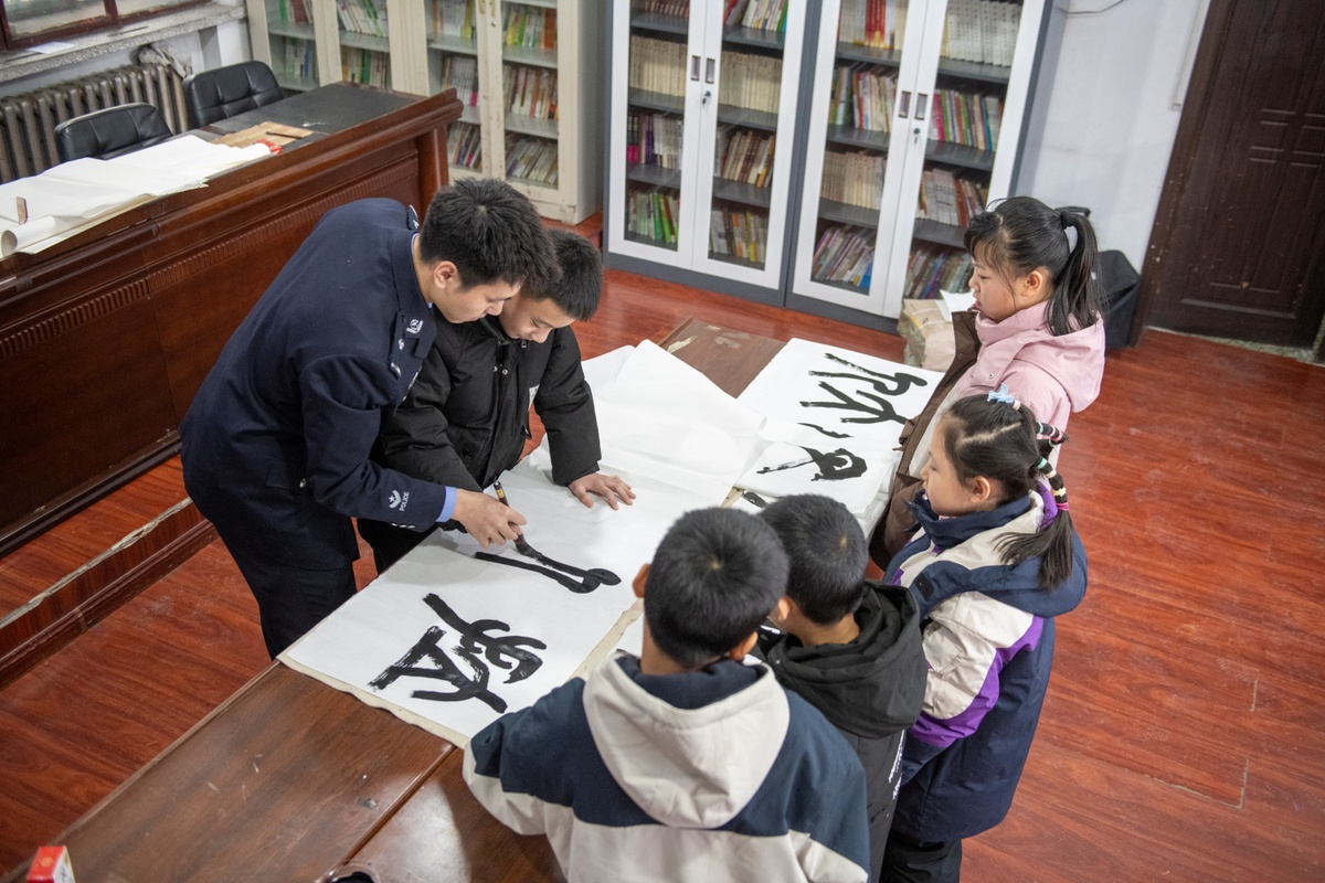 活动现场,民警化身“文艺宣传员”,一段原创的安全主题相声率先登场。幽默诙谐的对话、贴近生活的“包袱”,巧妙融入了违规燃放的危害等知识点,令村民在开怀大笑中记住了安全要点。随后的书法互动环节,民警现场挥毫,书写“平安是福”“文明燃放、阖家安康”等作品赠予村民,将安全理念以传统文化艺术形式传递,深受欢迎。