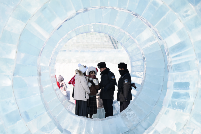 随着冬日画卷徐徐展开,冰雪大世界化身梦幻乐园,吸引着全国各地游客慕名而来。作为网红景区的守护力量之一,哈尔滨市公安局松北分局紧扣“一区一案、一点一策”工作要求,精准把握冰雪大世界冬季旅游人流密集、需求多元等特点,量身定制护游方案,以实打实的举措筑牢安全防线,用暖人心的服务护航旅途平安,让每一位游客在冰天雪地中感受到别样温暖。
