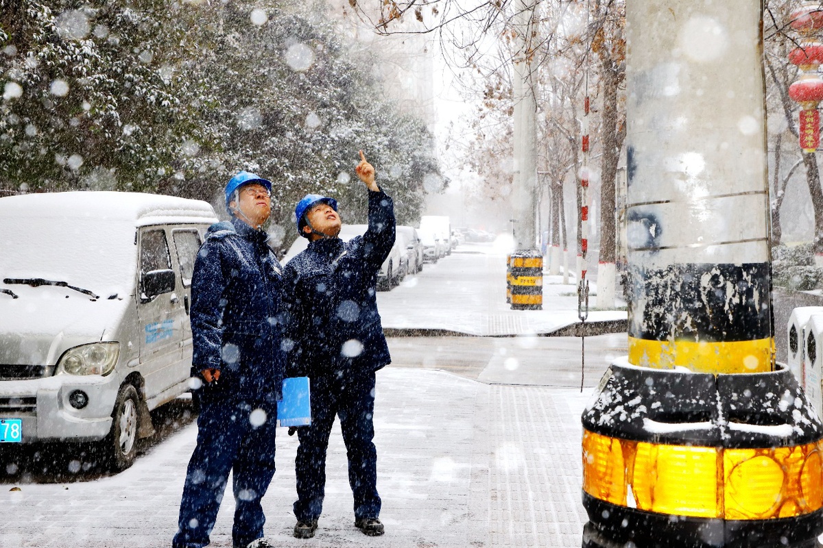 国网渭南供电公司则将服务延伸至沿街商户,供电服务人员路晨、张军渭冒雪穿梭在城区街巷,为鼎盛生活圈等商户开展用电安全专项检查,逐一排查配电箱、电器设备运行状况,讲解雪天用电注意事项,指导做好电器防潮、防过载防护措施,以精准服务保障商户稳定经营。