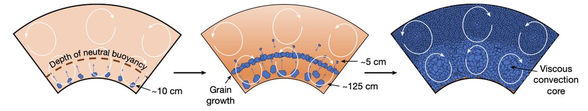 地幔凝固分层演化过程示意图