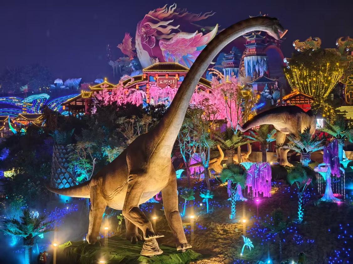 作为享誉世界的文化名片与国家级非物质文化遗产,本届自贡灯会以“灯绘华夏 筑梦未来”为主题,立足650亩中华彩灯大世界,打造“中国结大道”“福禄双至”“木兰传奇”等十大板块,以11组超大型灯组、200余组中小型非遗彩灯,将东方美学与科技魅力完美融合。
