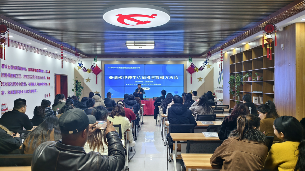 “作为非遗爱好者,我认为非遗不应该慢慢被人们所遗忘。希望通过这次学习,能让更多人了解非遗、爱上非遗,贡献自己的力量。”培训学员张丽谈及前来培训的初心。1 月 21 日 - 1 月 23 日,2025年新疆社会科学普及项目(中华优秀传统文化进基层项目)——“数智赋能・非遗润疆” 南疆地区非遗短视频创作培训与传播实践活动,在新疆莎车县新时代文明实践中心开展,66位来自莎车县的非遗传承人、基层工作者等参加了此次培训。