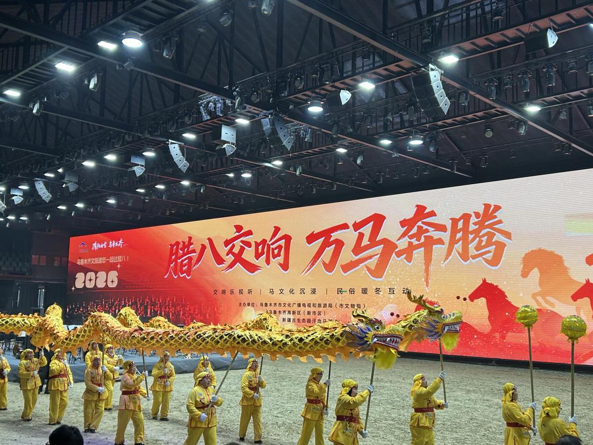 临近腊八节,本次活动以“交响乐视听+马文化沉浸+民俗暖冬互动”为核心,深度融合腊八民俗与丙午马年生肖寓意,通过社火表演、交响马术展演、公益粥宴、非遗体验、马年主题游戏等多元场景交织,吸引数千名市民游客参与,点燃冬日文旅活力,也为即将到来的丙午马年新春,奏响了一曲热闹而温暖的序曲。