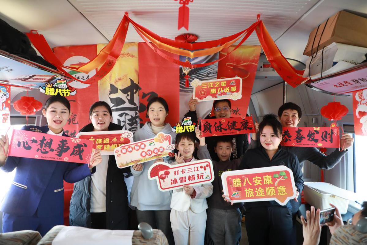 随着腊八节的到来,年味渐浓。这趟穿行于北国雪原与都市之间的高铁,不仅承载着旅客的团圆期盼,也成为传递传统文化、展示地域特色的流动窗口。温馨的服务与文化的交融,正让旅途充满温度,映照出人民出行更美好、更幸福的生动图景。