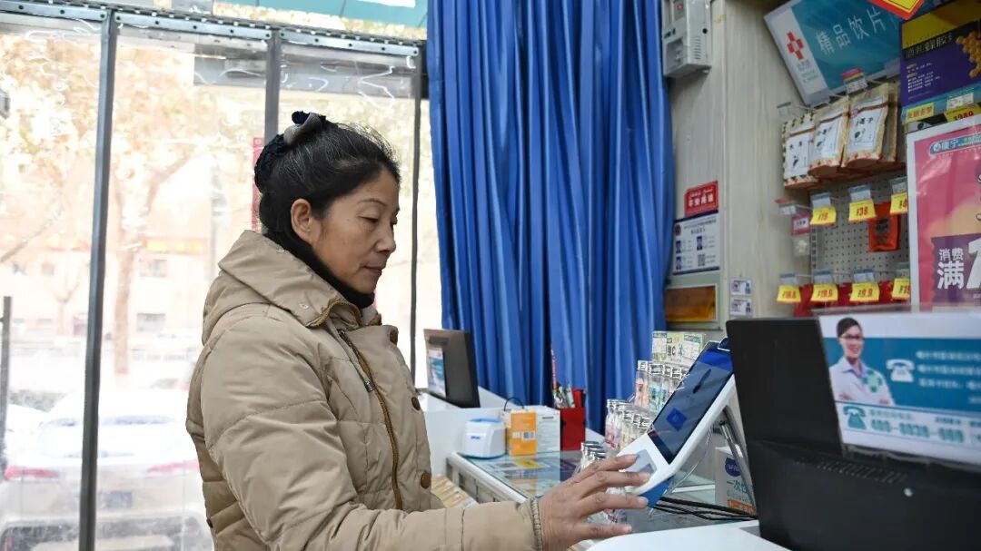 群众在药店使用医保“刷脸”设备支付医药费。(资料图)喀什地区融媒体中心 记者张吾乐 摄