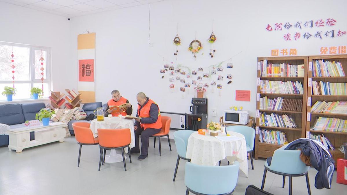 1月28日,在建国路街道水林社区人才公园党群服务驿站内,环卫工人们陆续来到这里,补水、充电、短暂休整。明亮整洁的空间内设施一应俱全。饮水机冒着热气,微波炉随时待命,休息区的桌椅整齐排列,旁边的图书角摆满了生活百科与文学名著,医药箱里的常用药品与应急工具摆放有序。