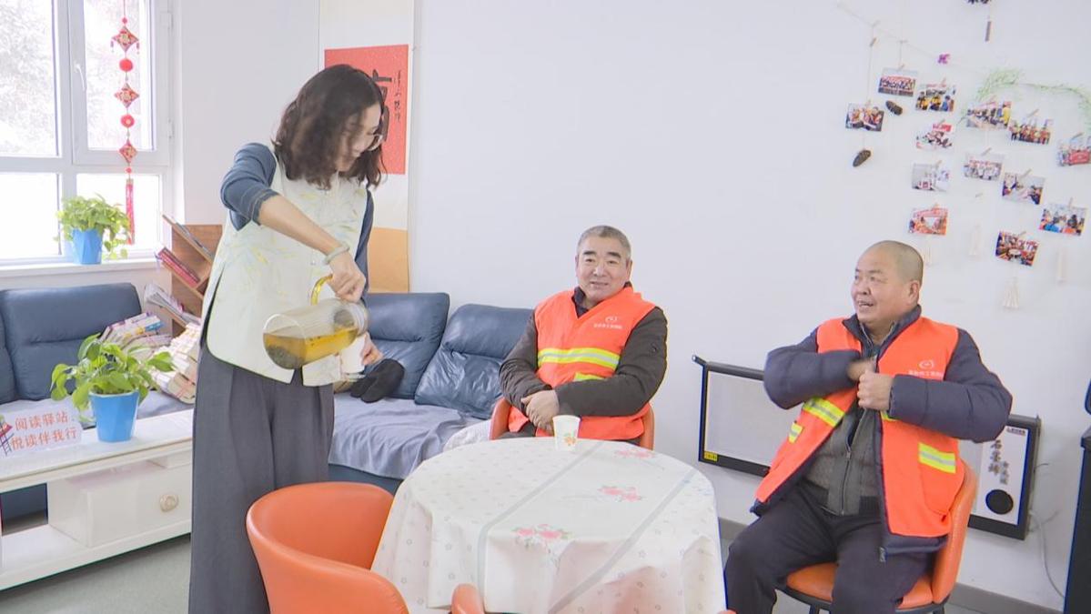 环卫工人杜发梓说:“每天来驿站喝热水、充电,有专人管理,环境又干净,这真是为我们户外劳动者办的实事、好事。”