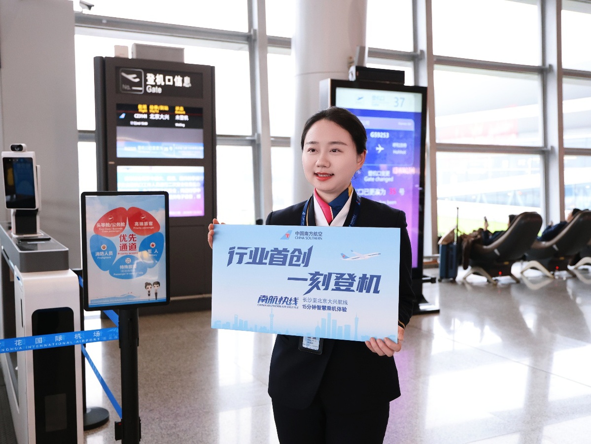 在服务效率升级方面,正式上线“一刻登机”,对长沙至北京大兴航线正式实施航班结载时间优化,由原来的30分钟缩短至15分钟,无行李托运旅客只需在航班计划起飞前15分钟完成安检并抵达登机口即可顺利登机,为旅客提供更高效便捷的出行体验。