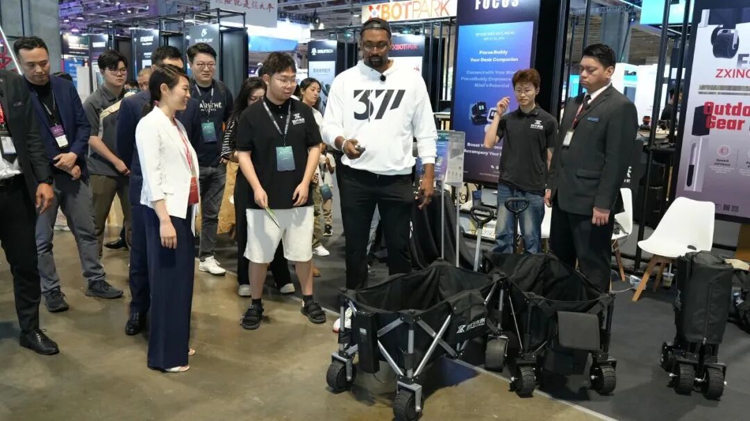 2025澳门BEYOND展会,篮球运动员阿泰斯特参观致行未来展位。(供图)