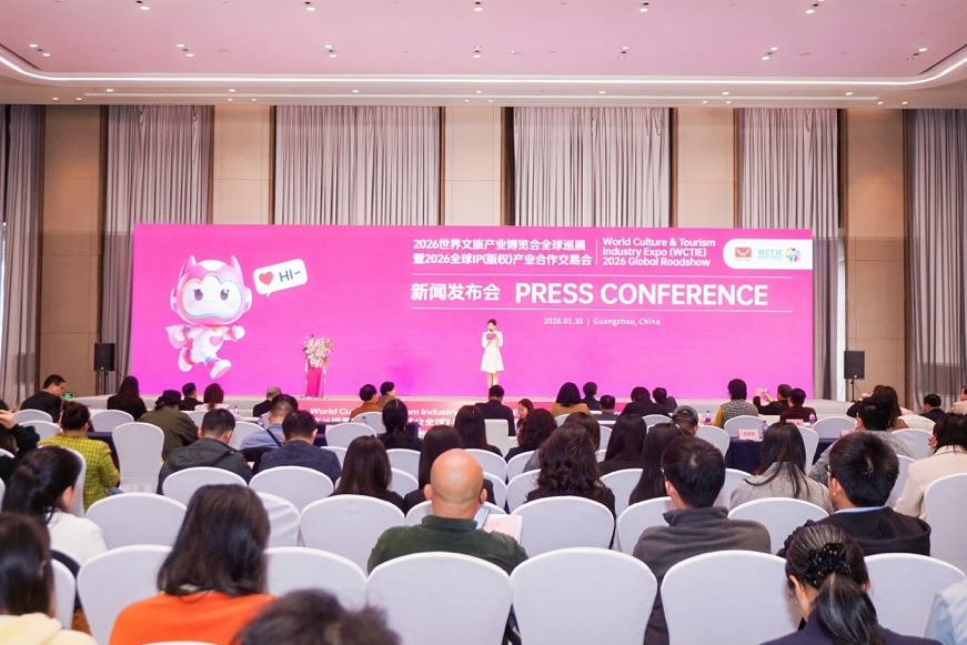 1月30日,2026世界文旅产业博览会全球巡展暨2026全球IP(版权)产业合作交易会新闻发布会在广州召开,政企媒体齐聚,以“IP×设计双驱动,链接全球文旅新机遇”为核心,共同见证文旅IP产业融合发展与全球化布局。