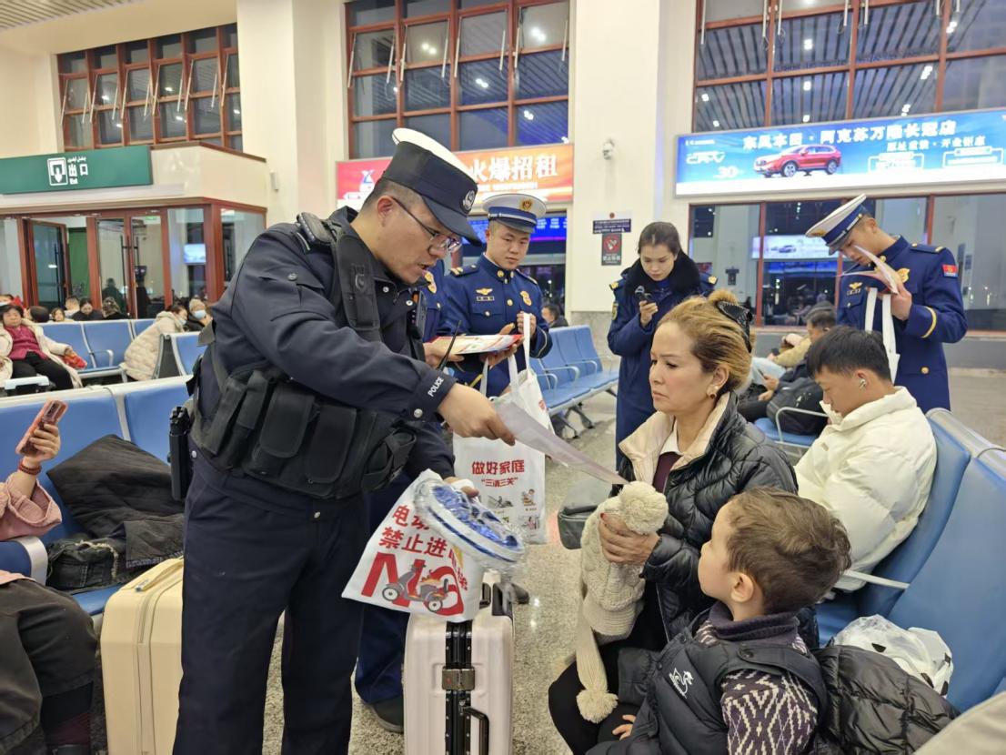 针对火车站人员密集、流动量大的特点,铁路公安民警和消防宣传员在候车大厅设置咨询台,通过发放图文并茂的宣传手册、现场答疑等形式,用通俗易懂的语言讲解出行防火常识、初期火灾扑救技巧及火场逃生要点,重点提醒旅客严禁携带易燃易爆物品、不在候车区吸烟等安全须知。