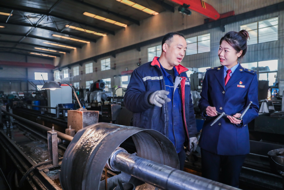 (图为该局“服务专班”干部在阜新凯斯特姆液压机械有限公司生产车间调研。)