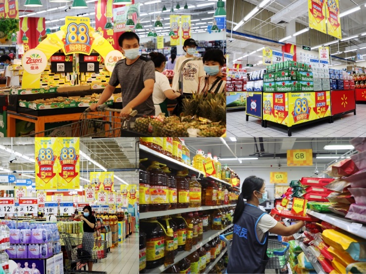 今年88购物节将持续到8月12日,沃尔玛小程序和沃尔玛京东到家新一轮促销返场活动正在进行中,包括母婴爆款、百货家具低至5折,零食低至6折,个护美妆满99减50,纸品满60减15等优惠,以答谢消费者对88购物节的支持和参与。