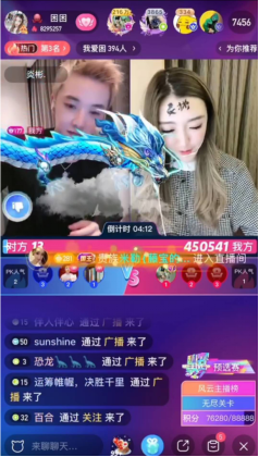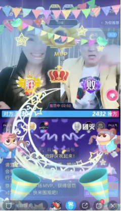 主播困困和炎彬pk时,两方嗖嗖嗖地送出了多个超大礼物“与你对抗全世界”,让直播间“烟花漫天”。主播布丁和三毛连线pk时,三毛听闻布丁大哥不在,立马嚣张起来,结果还没得意三秒钟,布丁大哥就扔出了一个梦幻王座,直接把对方KO,尽显赛事的大起大落。