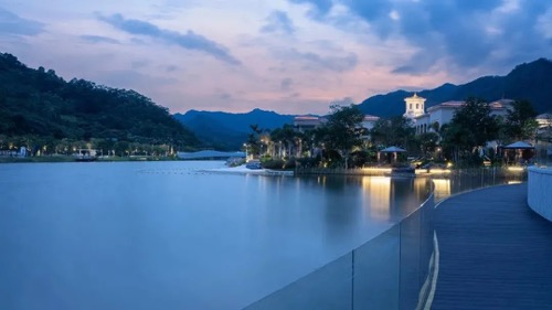 而春沐源小镇,坐落在千溪悠谷之中,拥有整个大湾区内无可比拟的自然禀赋。紧邻华南最大的水源保护区,上游径背、老炉下2座水库,保障了河流水位,让小镇四季皆有流水绕境。目前,这里拥有酒店、儿童乐园、体验馆等多种业态,未来也将持续发展,打造一个中国独特的美学度假山谷,号召更多的都市人回归生活、回归自然、回归真我。