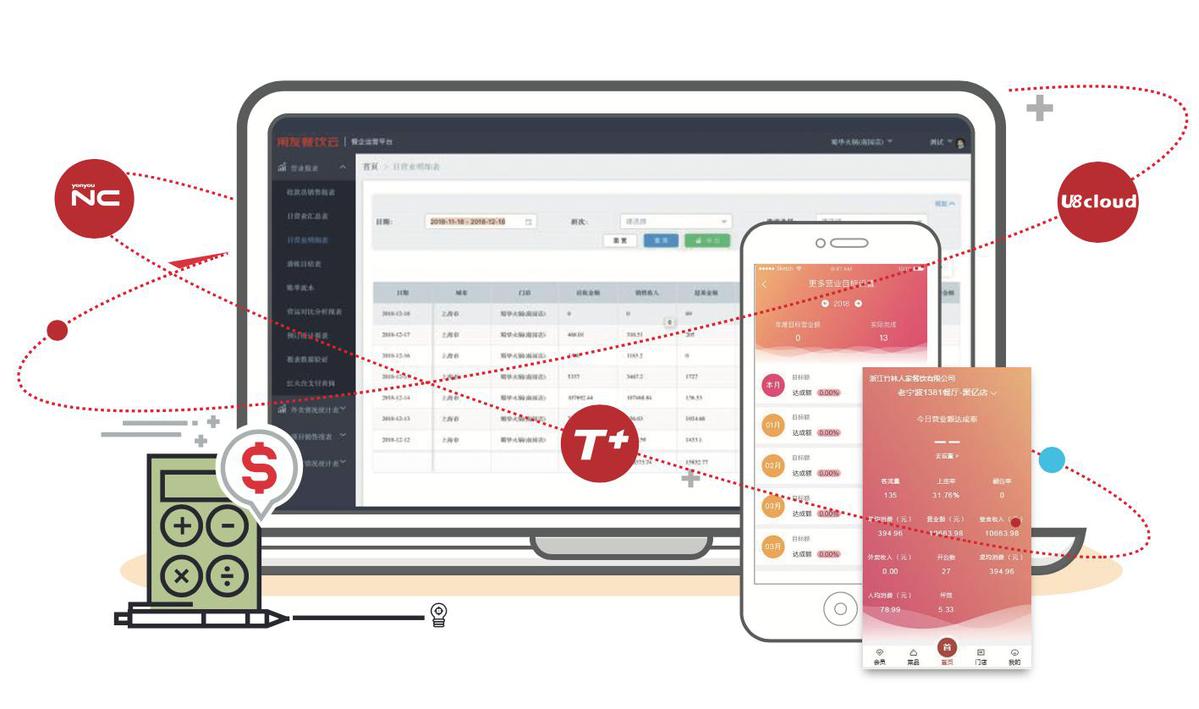· 基于NC/U8C/T+ERP(餐饮行业版)财务管理系统,与前台、中台、后台业务一体化对接,实现及时自动记账。