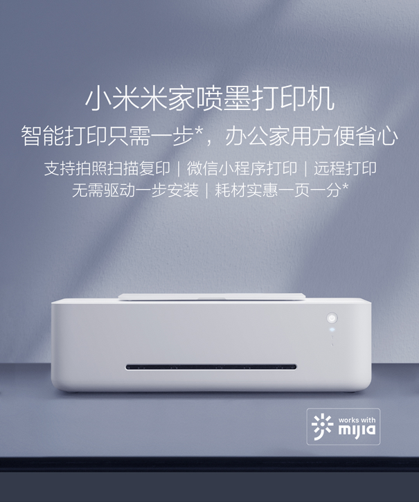 小米米家喷墨打印机针对这一系列痛点给出了解决方案。
