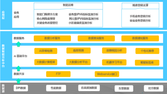 2019年,移动集团网络工作会明确提出“网络运维要向以客户感知为中心的高质量发展要求转型;当前传统网络基于故障KPI的监控分析体系已无法满足客户需求;现网仍然缺乏解决IPv6业务感知分析及问题定位的IT方案”。因此迫切需要借助O域网络大数据分析技术来实现IPv4/v6网络的专项优化,提升网络感知,发现网络隐患,释放大数据价值。为此,陕西移动启动了2019年网络大数据分析优化服务项目,意在引入既熟悉运营商网管业务又在AI方面有着深厚技术底蕴的合作伙伴来共同解决上述问题。