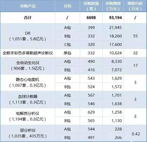 2016至2019年,各省市的批量招标陆陆续续开始,浙江,湖北,湖南,江西,云南,四川,贵州,宁夏,广西,海南,新疆等省市少则几十台,多则上百台,最多的超过千台(2017年贵州千台批量标),招标价格也是一次比一次低。以贵州千台为例,直到现在还备受业界关注,由万东、深图、安科分别中标399台、332台、320台DR,但均价均未超过25万(万东中标均价为24.65万、深图中标均价为22.9万、安科中标均价为23.6万),三家单价不到预算均价的一半(预算均价为单台55万)。以下为招标前后DR的价格对比: