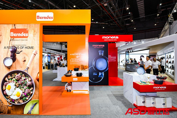 首次参展的国际厨具品牌格外抢眼,其中不乏具有百年历史的德国高端品牌Berndes、意大利有150多年沉淀的Moneta、意大利知名品牌Alluflon、美国品牌Ammeloo、中国高端品牌ASD等,这些品牌均为爱仕达引入中国的知名国际品牌,在国内展会上首次集体“官宣”。