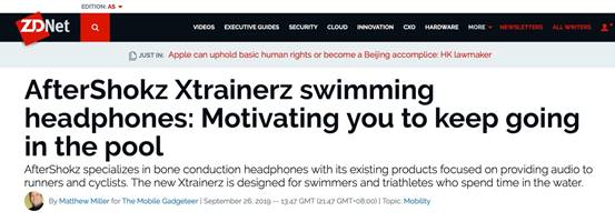 权威科技媒体ZDnet的前不久发布了一篇Xtrainerz的测评,题目是《Xtrainerz激励你在泳池中不断前进》。专栏作者Matthew Miller在文章的一开始就亮出了AfterShokz韶音铁粉的身份。他这样写到: