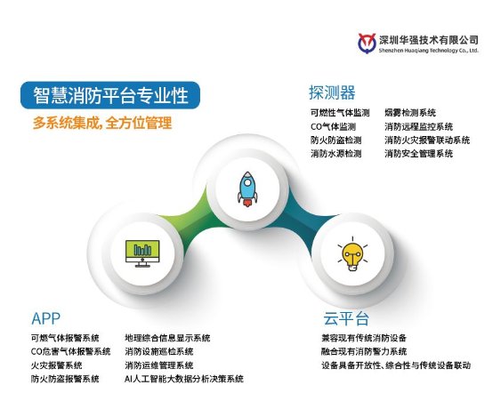 此外,华强技术在智慧消防解决方案已在河南等多个城市广泛应用。方案运用NB-IoT、无线传感、云计算、大数据、人工智能等先进技术,对消防设施、器材、人员等状态进行智能化感知、识别、定位与跟踪,实现消防状态实时可视化管控,协助解决“九小”场所消防监管难题,建立常态化火灾隐患排查整治机制,增强消防灭火救援能力,让消防工作与城市经济发展相适应。