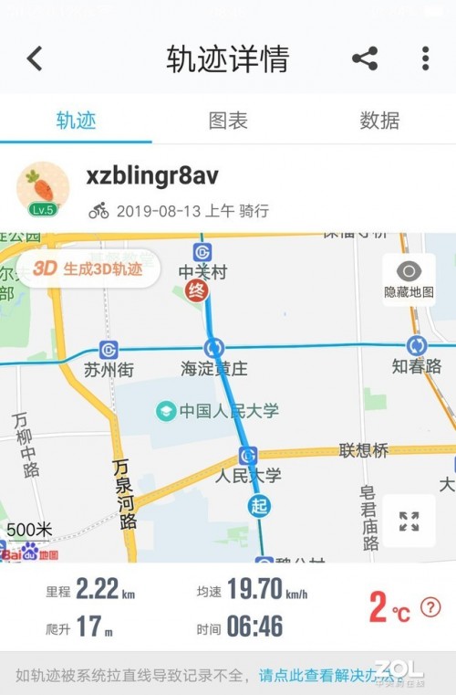 刚好赶上要去趟距公司1公里的银行办张银行卡,所以笔者决定骑上仅充电10分钟的铅酸电池电动车出去溜溜,内心还是有点小担心的,但事实证明,它还是很给我面子的,不仅顺利把笔者送回了公司,最终跑了2.22公里,铅酸电池耗尽了体力。