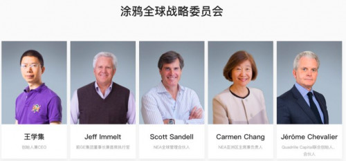 涂鸦智能全球战略委员会的5位委员分别是:涂鸦智能创始人兼CEO王学集、涂鸦智能美国董事长(原GE董事长)Jeffrey R. Immelt(杰夫·伊梅尔特)、NEA全球管理合伙人Scott Sandell、NEA亚洲区主席兼负责人Carmen Chang和Quadrille Capital联合创始人、合伙人Jér me Chevalier。