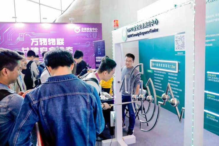 在 OPPO安全应急响应中心展位上,让人脸红心跳的“网红 10秒机”,拍拍拍,努力拍出一个10秒!还有帕金森检测神器——火线冲击游戏,实力诠释要想赢,手不能抖,心态放平。