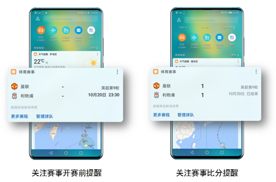 张晶磊举例介绍,华为手机用户可通过手机智能助手订阅新浪新闻的体育赛事,关注喜爱的球队后就可实现体育赛事智慧推荐。当用户关注的球队有比赛时,快服务智慧平台会主动将赛事提醒卡片分发到智能助手,提醒用户及时观看比赛;如果用户错过比赛,只需右滑一下即可在智能助手看到实时比分卡片,也可点击“更多赛程”到新浪新闻app查看更多详细报道。