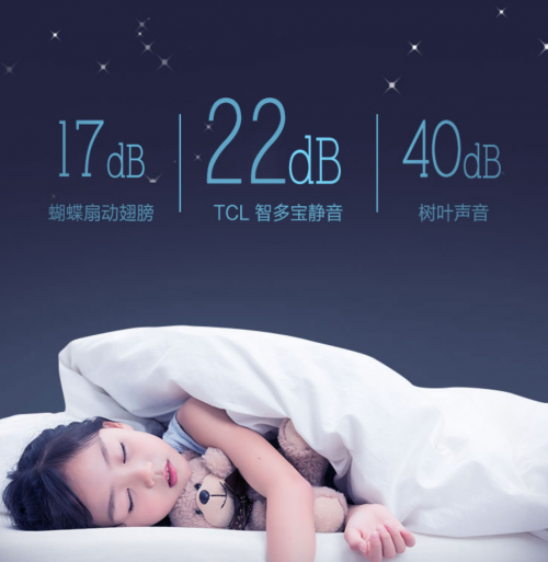 既然说到夜间使用,那么空调的运行噪音也必须考虑进去,毕竟对于不少“失眠症患者”来说,只要一丁点的噪音就会让他们睡不安稳。TCL智多宝一级变频空调为此专门采用静音设计,在静音档下工作时的噪音仅为22分贝,几乎完全听不到,让你不被打扰一觉睡到大天亮。