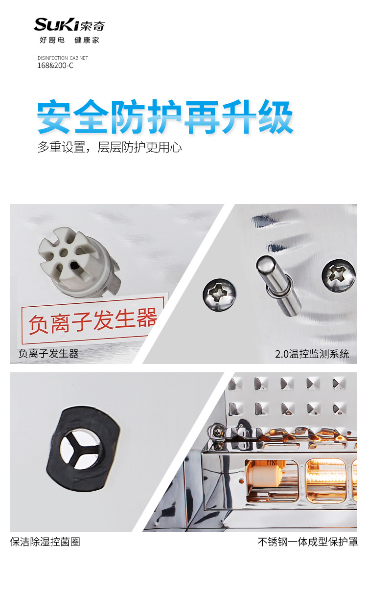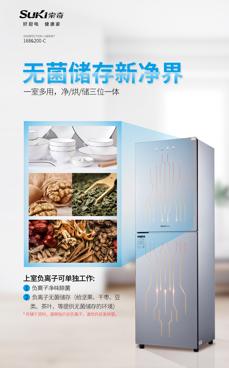 在健康、高品质成为消费升级关键词的今天,消毒柜市场对健康无异味、一机多用、净烘储一体等需求大幅增加,趋势日渐明确;这点,索奇在3年前启动负离子消毒柜项目研发时已认识到并着力投入人力、物理开发该系列产品以满足市场及用户需求。但很多品牌目前还将产品功能局限于消毒性能,这现象在业内人士看来,归根到底还得依靠消毒柜企业凭借技术突破及功能创新来驱动。