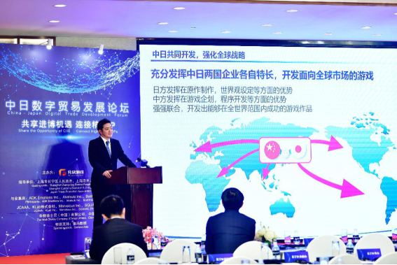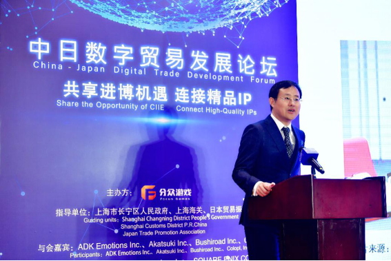 (11月11日,上海讯)为了更好地承接进博会溢出效应,助力上海数字创意产业发展,2019年11月11日,由上海市长宁区人民政府、上海海关、日本贸易振兴机构指导,分众游戏主办的“中日数字贸易发展论坛”在上海顺利进行。上海海关关长高融昆、上海市长宁区委书记、代区长王岚、日本贸易振兴机构上海办事处首席代表小栗道明出席论坛并致辞,来自上海市商委、上海市长宁区相关职能部门、中国联通、日本知名游戏和IP企业的嘉宾和代表出席了论坛,立足精品IP,齐话上海数字贸易发展。