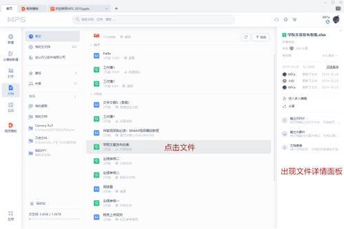 如果需要查看文件的历史版本,只需点击文件,即可在右侧出现文件详情区域,简化了用户的查找流程。