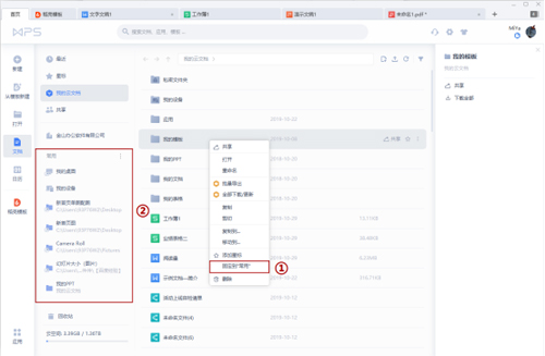 如果用户还有常用的文件、文件夹,也可通过鼠标右键的方式,将它们固定在首页的「常用」位置之中,实现各类文件的快捷访问,轻松提升办公效率。